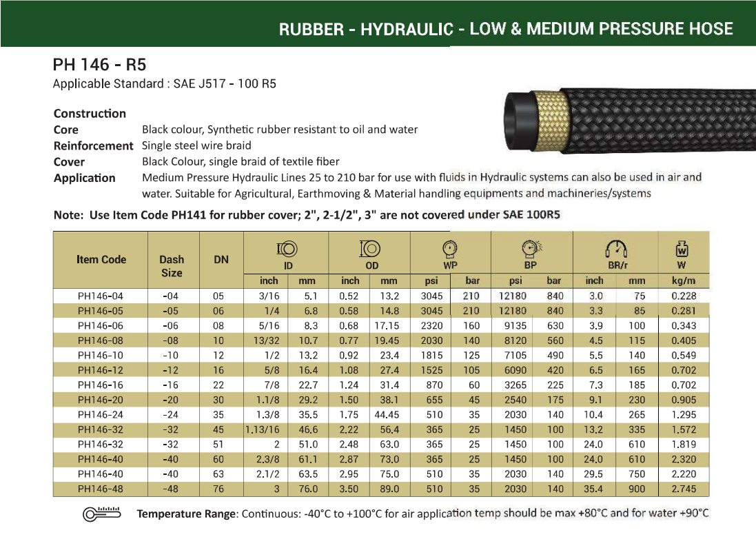 สายไฮดรอลิคผิวผ้าใบถัก ลวด1ชั้น SAE 100R5 / PH146